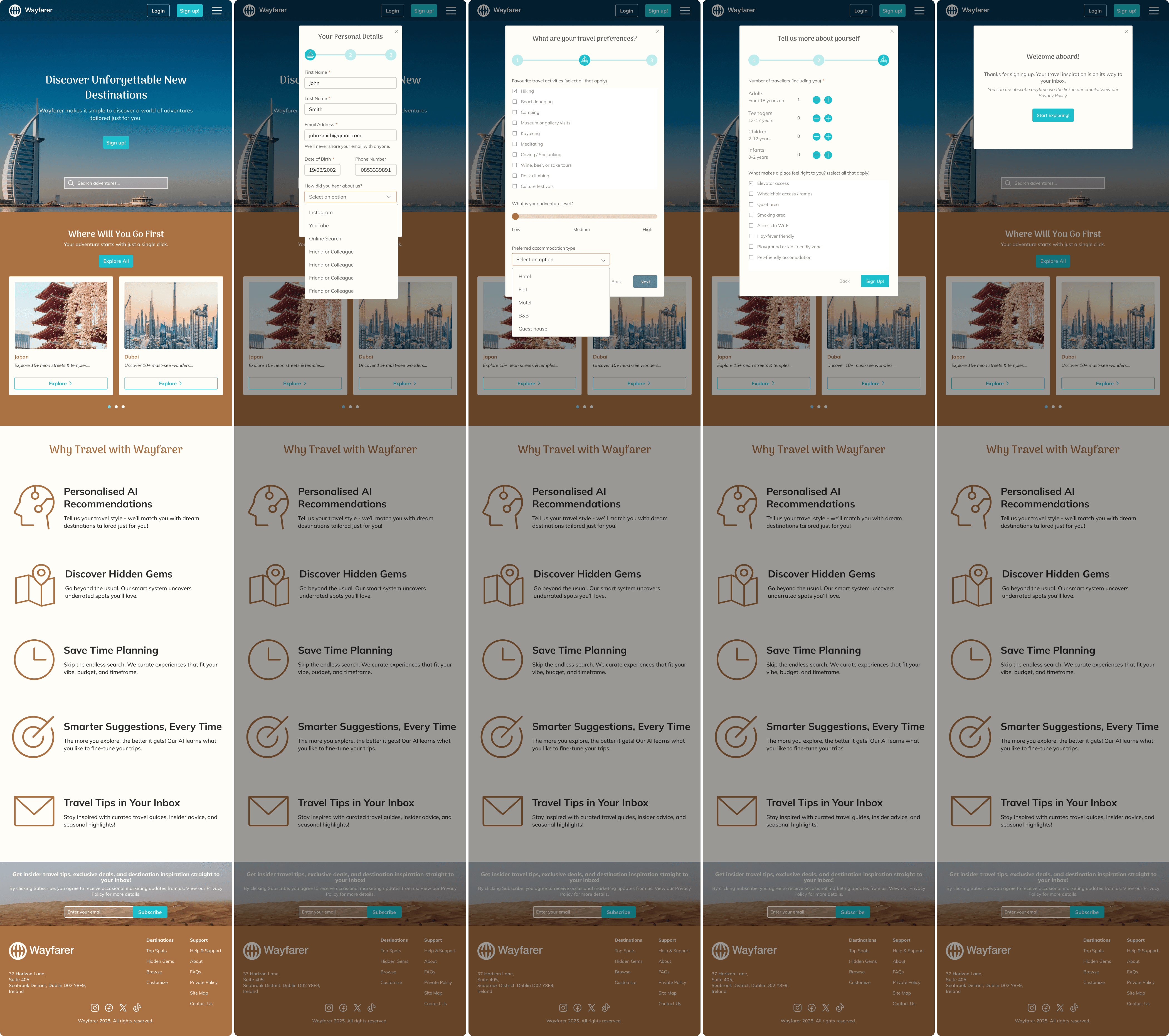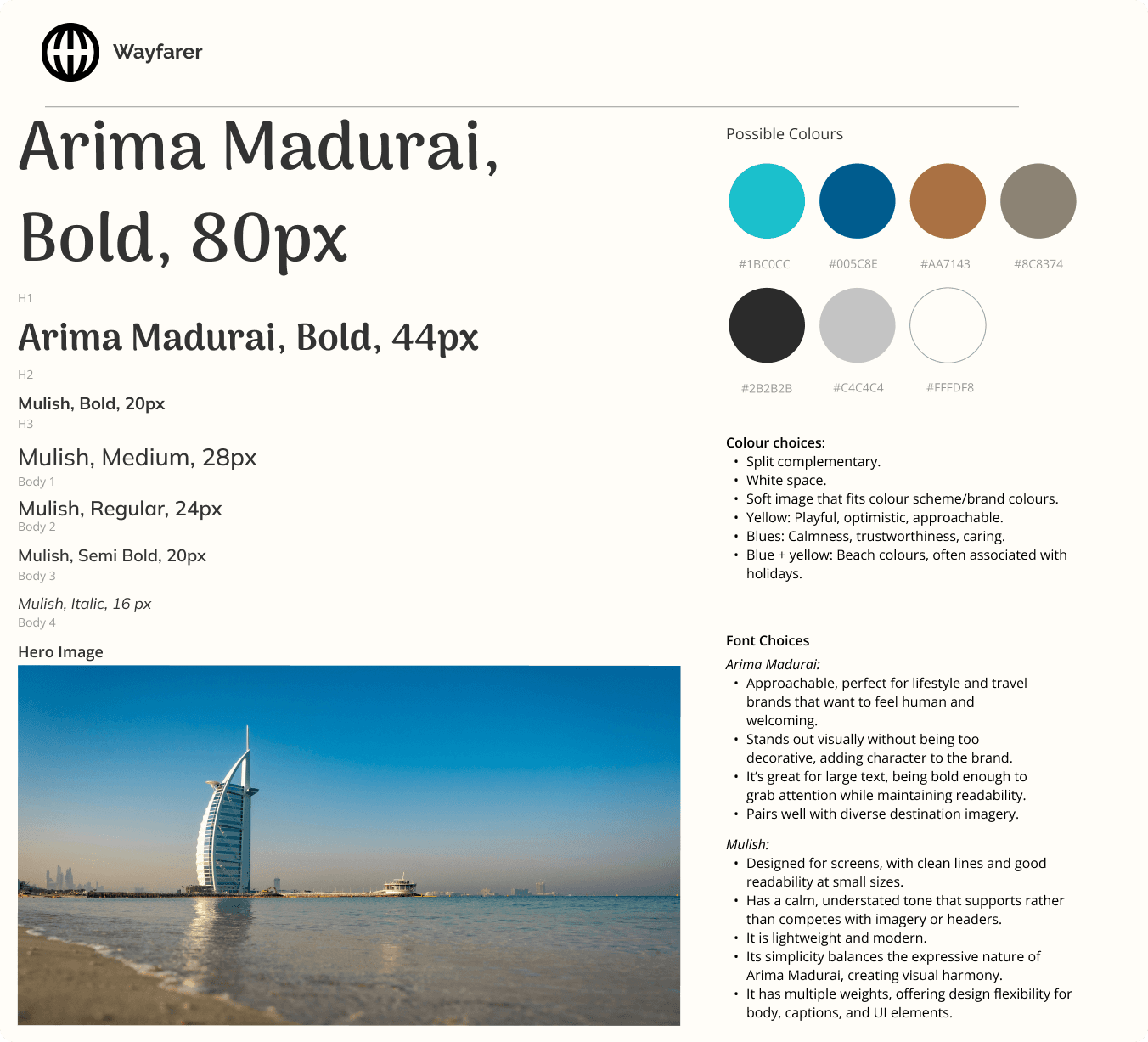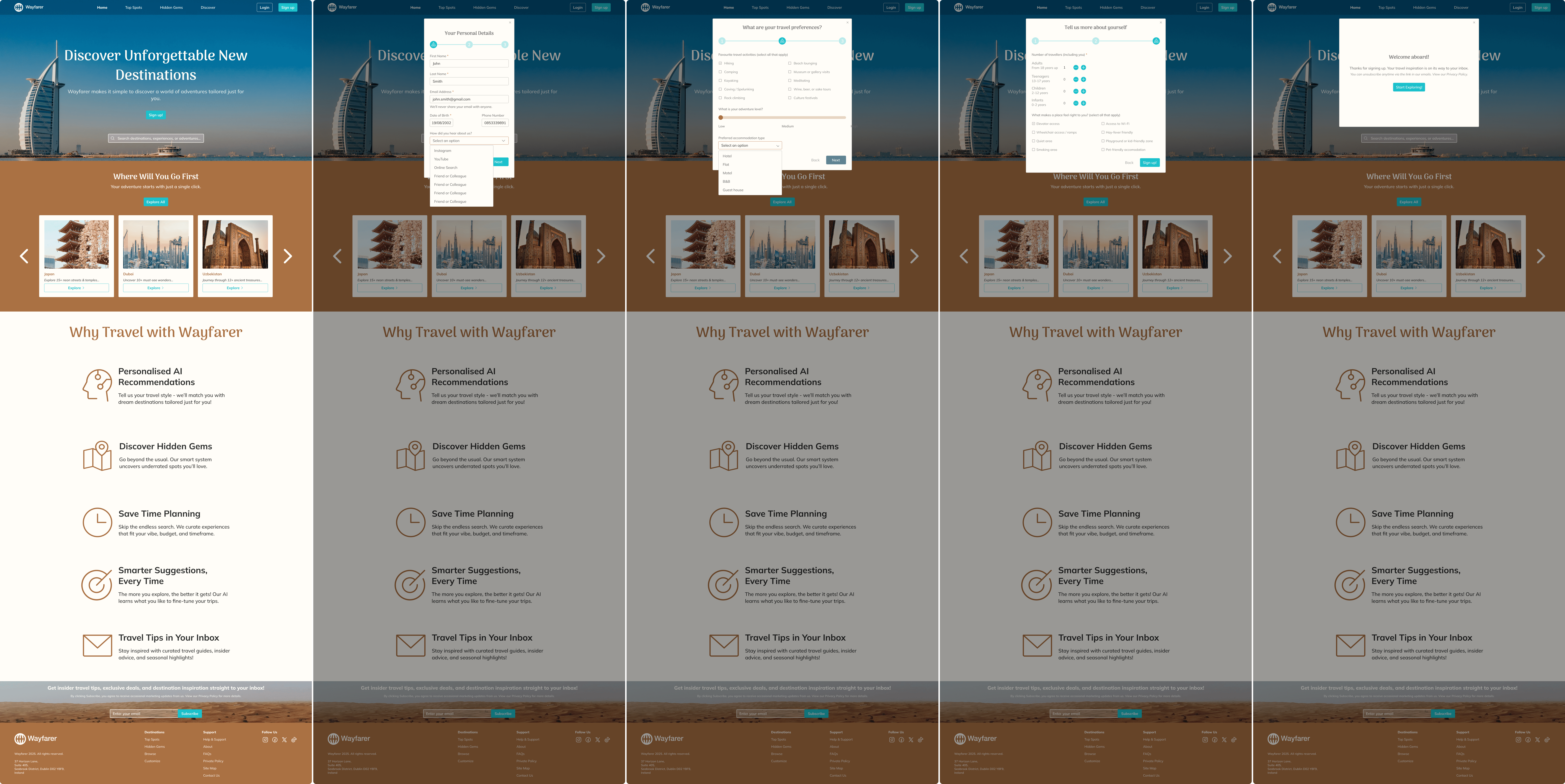 Wayfarer is a fictional travel discovery platform designed to help curious travellers find destinations that match their interests. Rather than selling trips or flights, Wayfarer acts as a research tool that recommends unique places and experiences using AI.
