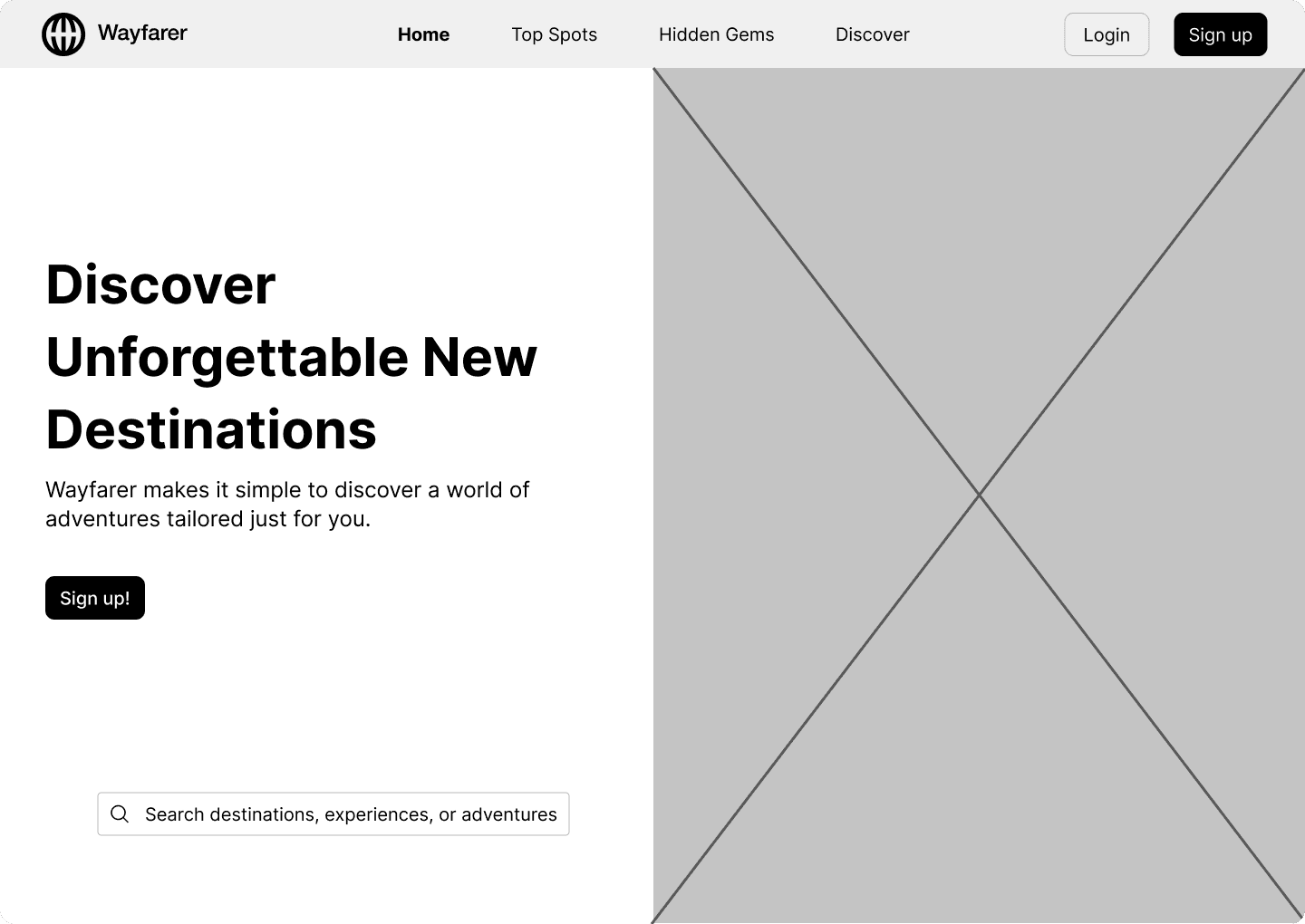 This project focused primarily on UI design, layout systems, and responsive design. The goal was to redesign Wayfarer’s homepage and create a visual language that captures a sense of wanderlust while improving clarity and usability.
